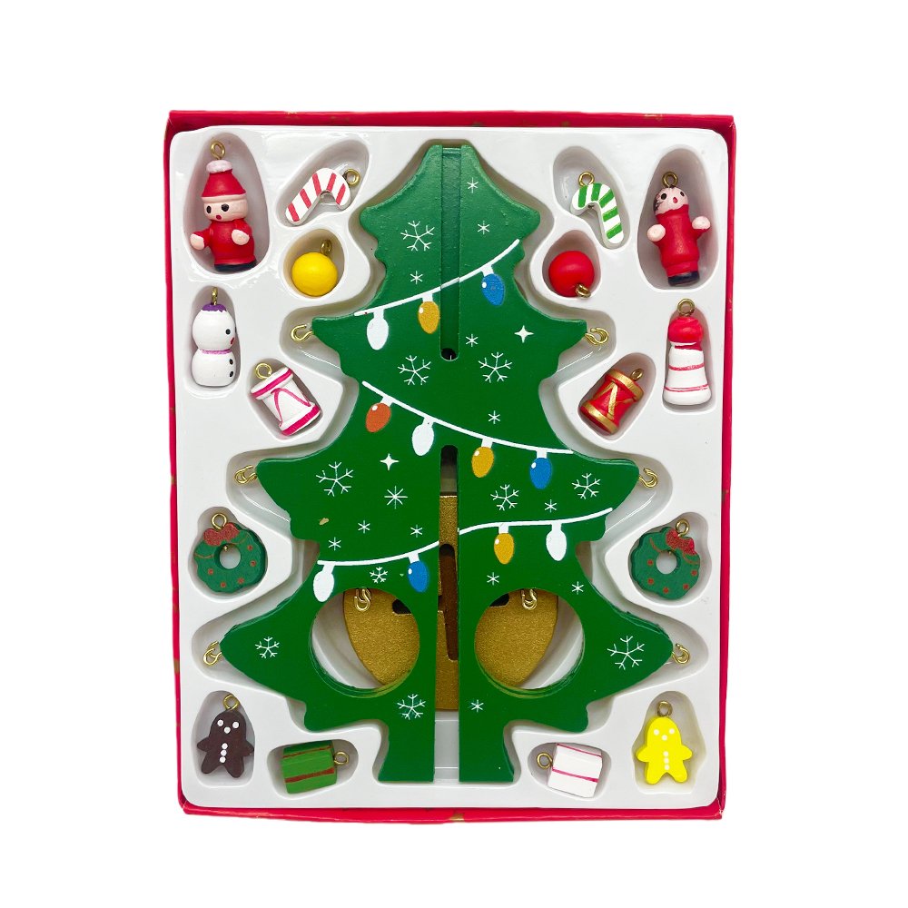 Celebrate the season with this DIY Wooden Christmas Tree Decoration Kit! Designed in a festive green color with colorful string-light graphics and snowflake details, this holiday craft set brings instant cheer to any room. It includes 12 adorable mini ornaments such as Santa, snowman, gifts, wreath, cookies, and candy canes — all hand-painted to enhance the Christmas spirit.
