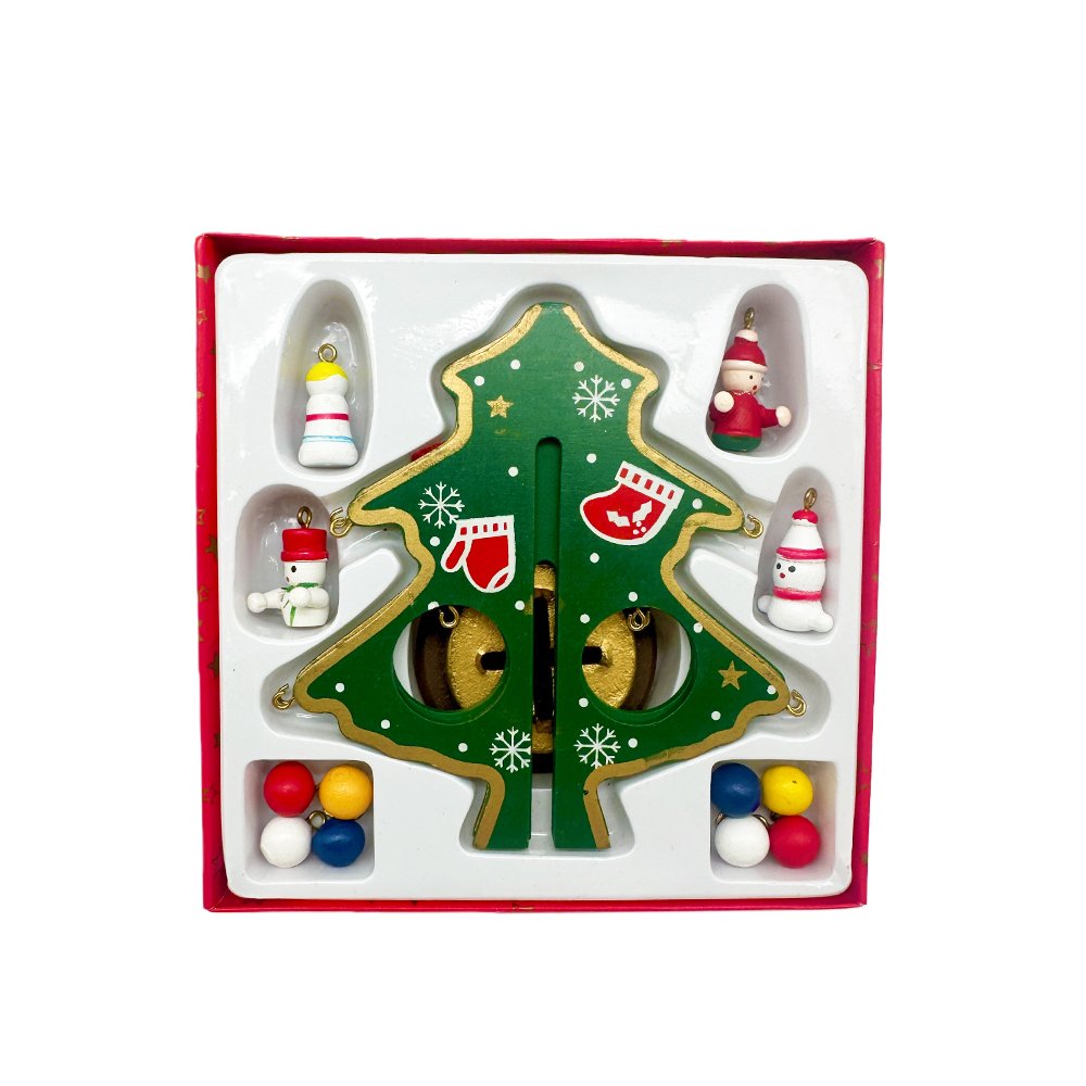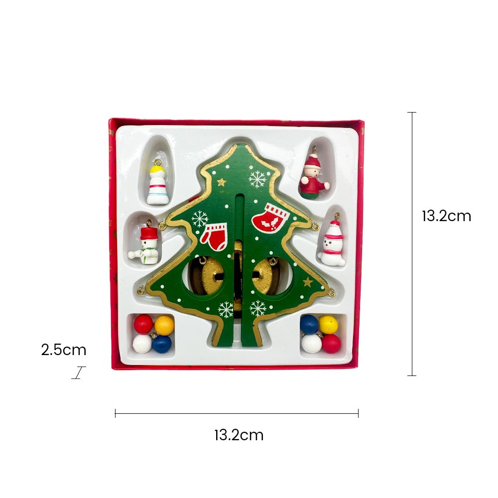 Create cheerful Christmas memories with this DIY Wooden Christmas Tree Decoration Kit! This adorable mini green tree with a bright yellow star topper includes cute, colorful ornaments such as Santa, snowman, stocking, and festive balls. Simply connect the wooden pieces, hang the ornaments, and enjoy a charming display that brings holiday spirit to any small space.