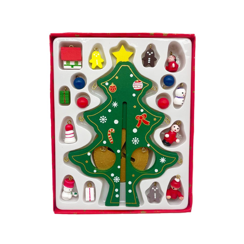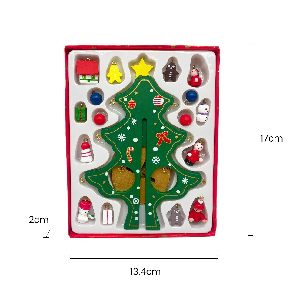 Create warm holiday memories with this DIY Wooden Christmas Tree Decoration Kit! This charming craft set includes a beautifully painted wooden Christmas tree and 12 miniature hanging ornaments — featuring Santa, snowmen, gingerbread, gift boxes, and more. Each piece is finely crafted from quality wood and decorated with vibrant festive colors to add delightful detail to your Christmas décor.