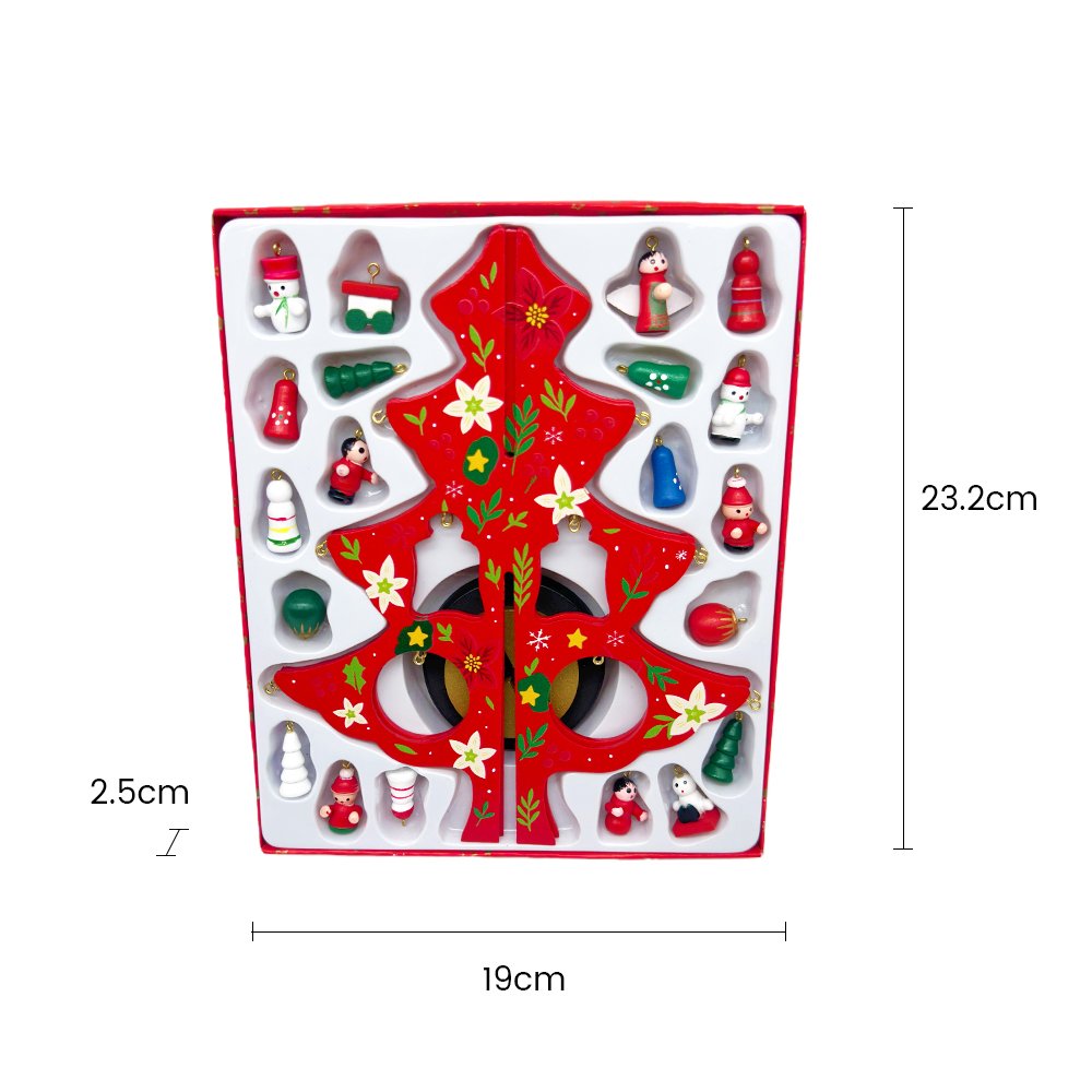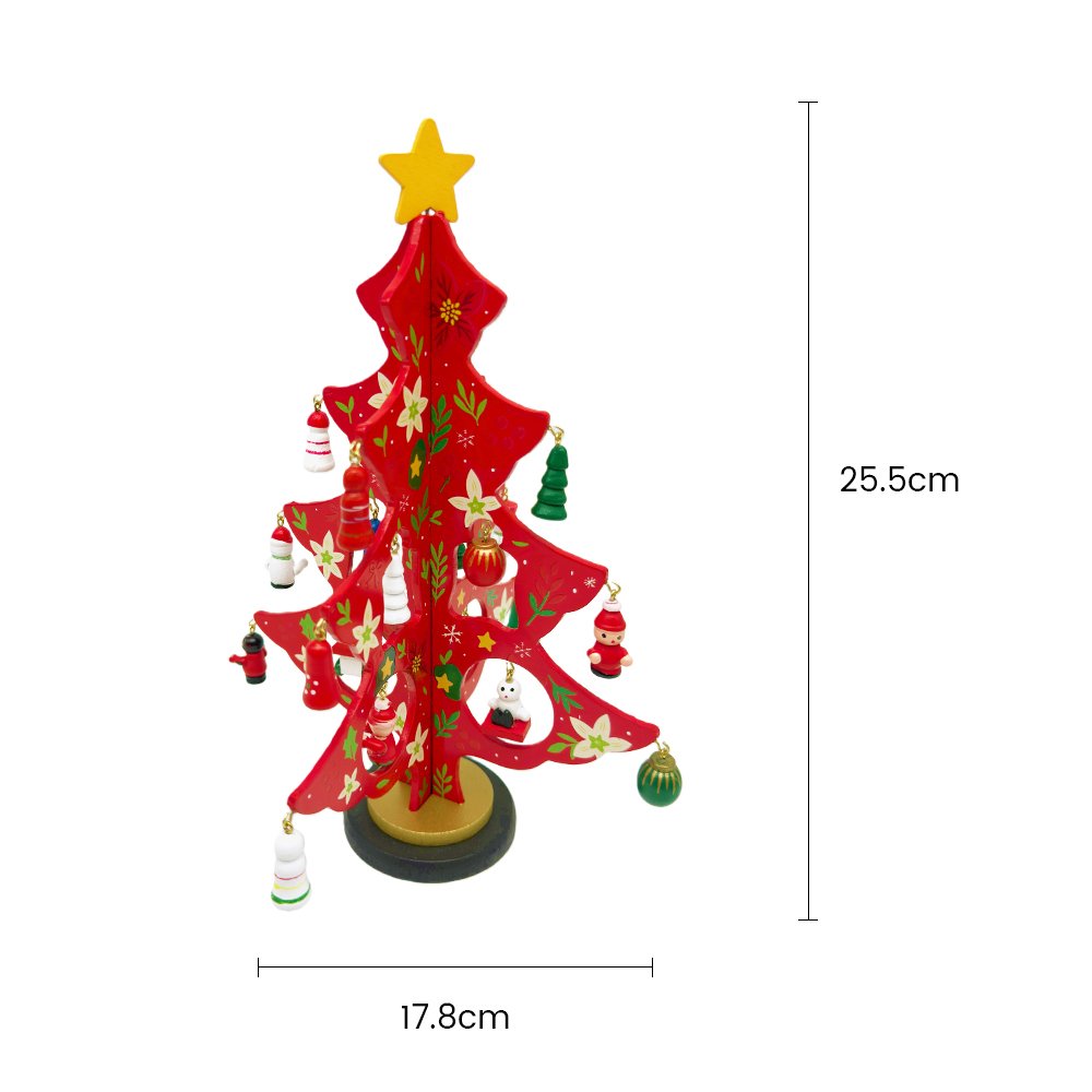 Bring home festive crafting fun with this DIY Wooden Christmas Tree Decoration Kit! Designed in a vibrant red with hand-painted poinsettias, snowflakes, and holiday greenery, this tabletop Christmas tree includes 24 adorable mini ornaments such as Santa, snowmen, gifts, Christmas trees, and bells.
