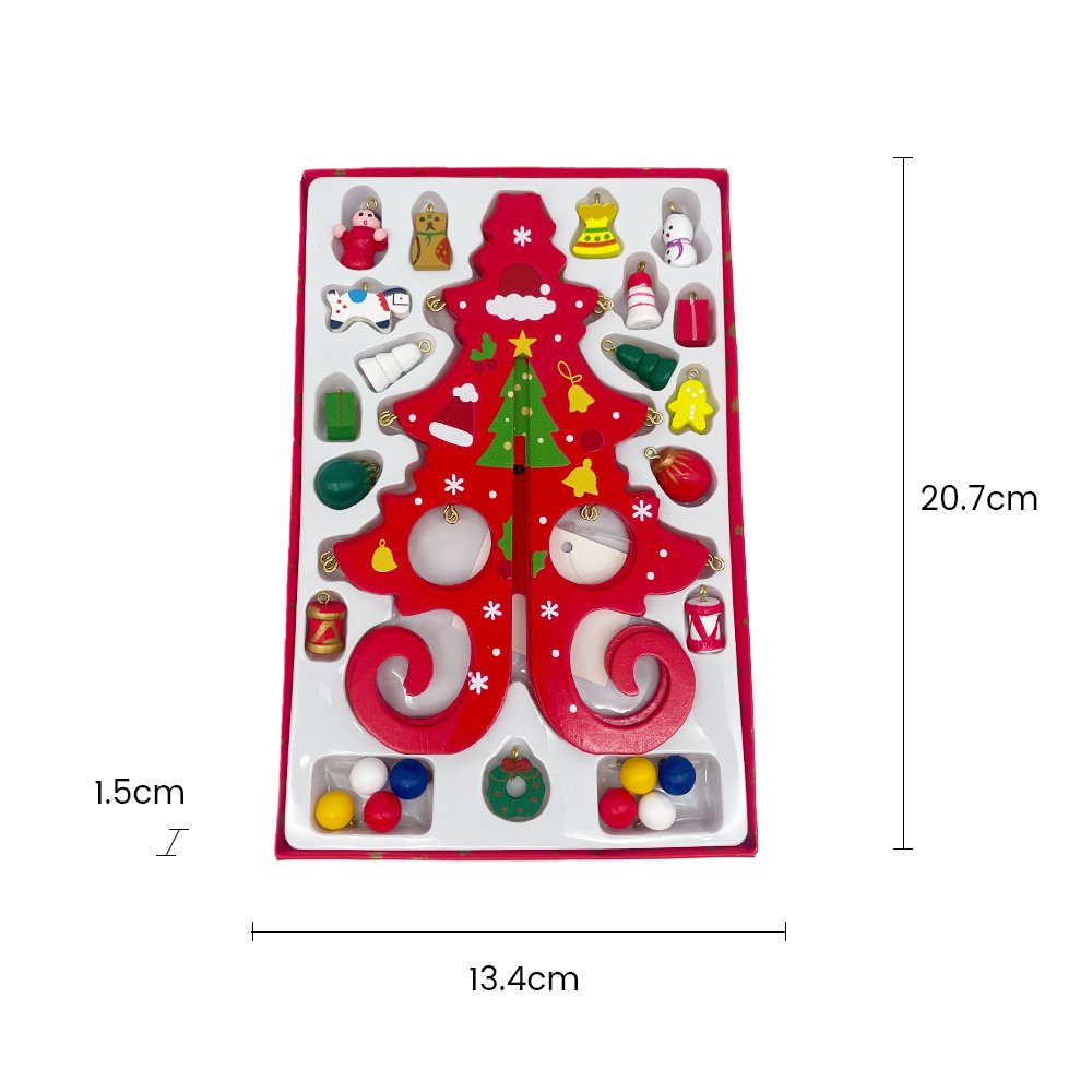 This set assembles in seconds — simply slot the two wooden panels together and hang the ornaments on the golden hooks. With a height of 19.5cm, it becomes a charming tabletop decoration for home, office, classrooms, party displays, and children’s holiday crafting activities. A durable wooden keepsake you’ll enjoy displaying year after year.