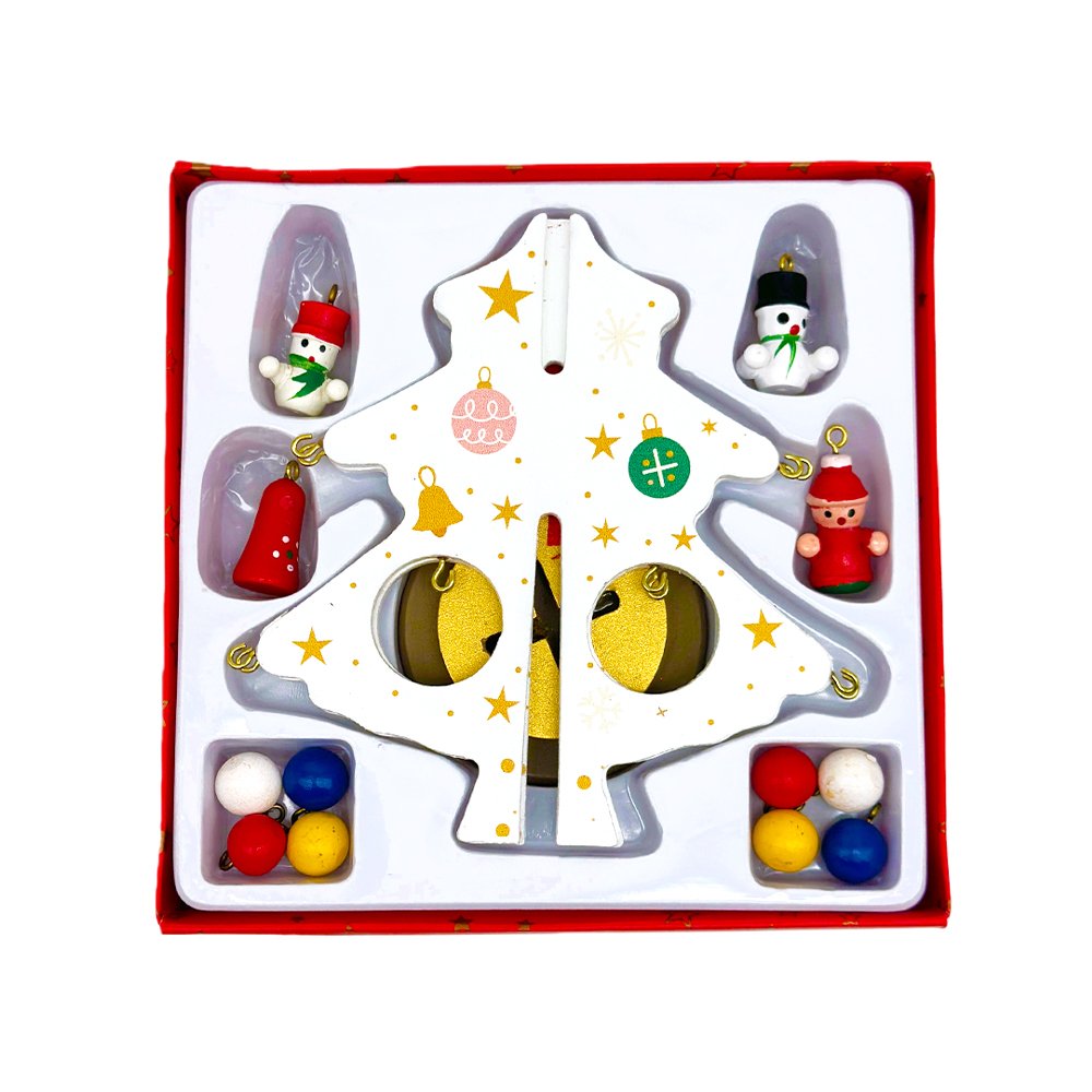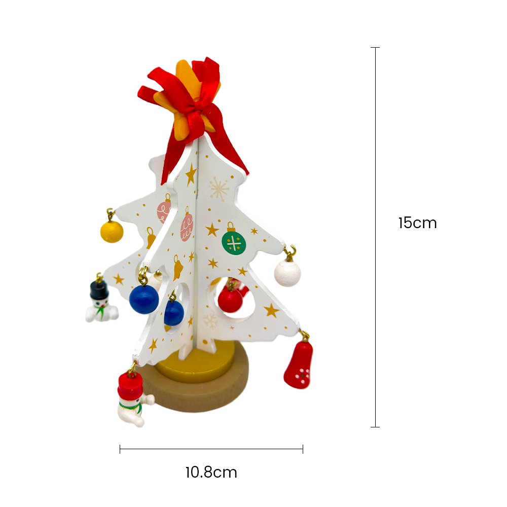 Celebrate the magic of Christmas with this DIY Wooden White Christmas Tree Craft Kit! Designed with charming holiday patterns including stars, baubles, and festive icons, this mini tabletop tree also includes 12 colorful hanging ornaments such as Santa, snowman, bells, and round baubles. Finished with a bright golden star and a bold red bow on top, it brings an extra festive sparkle to any small holiday space.