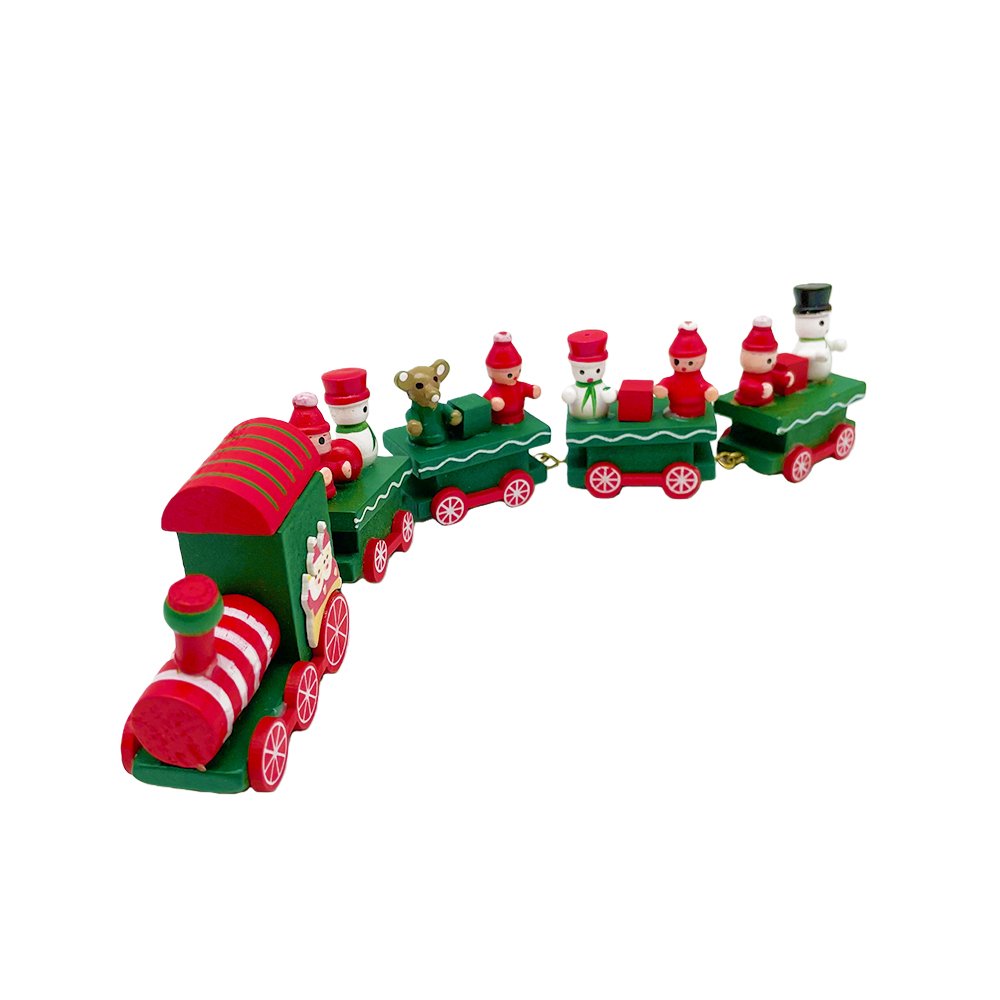 Celebrate the magic of the holidays with this Green & Red Wooden Christmas Train, a vibrant decorative piece filled with classic Christmas characters. Featuring five connected wooden cars, this extra-long festive train includes Santa, snowmen, a teddy bear, plus colorful gifts and ornaments.