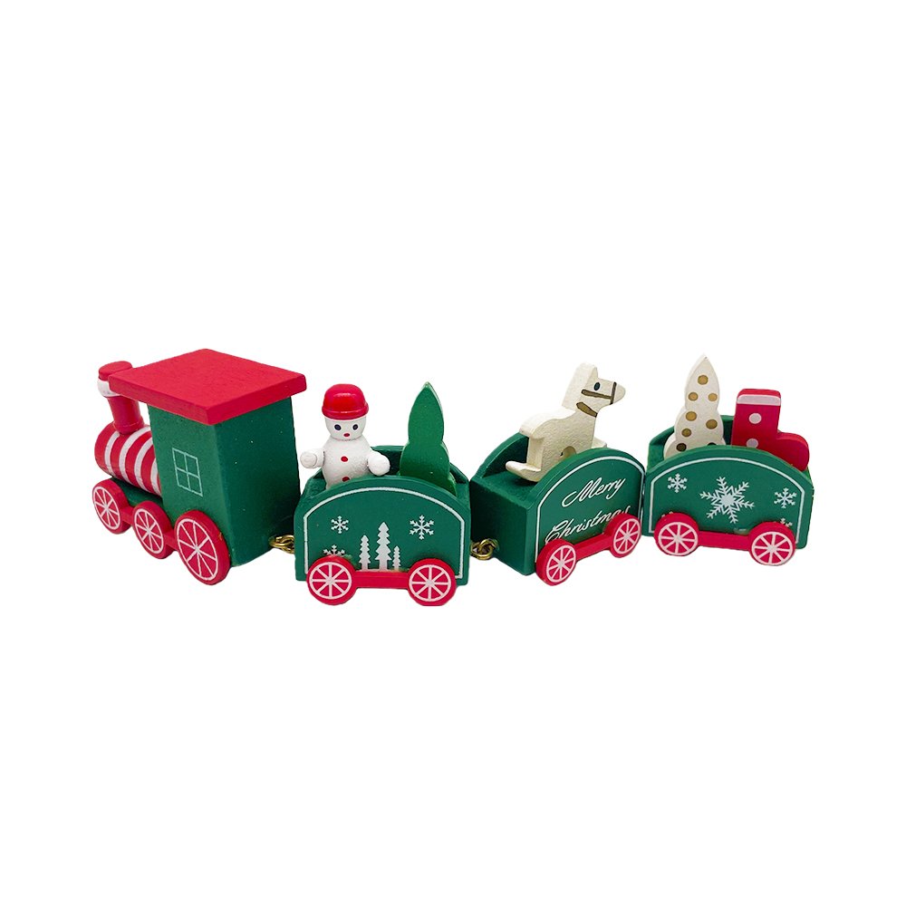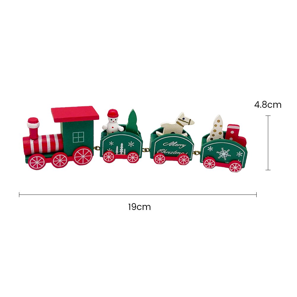 Create a joyful Christmas atmosphere with this Green & Red Wooden Christmas Train Decoration — a festive and playful addition to your holiday home décor. Crafted from high-quality wood and painted in vibrant red and green tones, this charming train includes four connected cars featuring a snowman, a Christmas tree, a reindeer, and gift elements, bringing delightful holiday storytelling to life.
