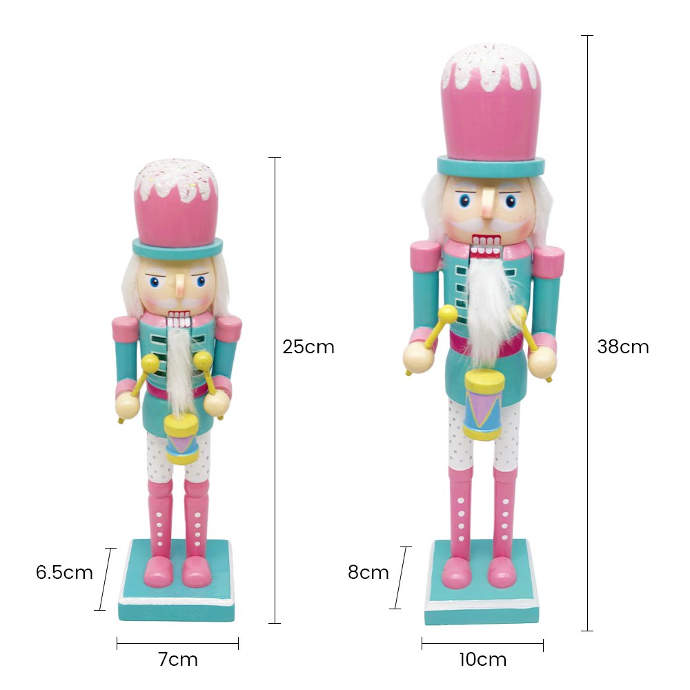 Crafted from solid wood and hand-painted with smooth finishes, this nutcracker is sturdy, durable, and designed for tabletop display. Available in two sizes—25cm and 38cm—it works beautifully on mantels, shelves, entry tables, children’s rooms, or festive retail displays. A delightful decorative piece that blends classic nutcracker tradition with a fresh, playful twist.