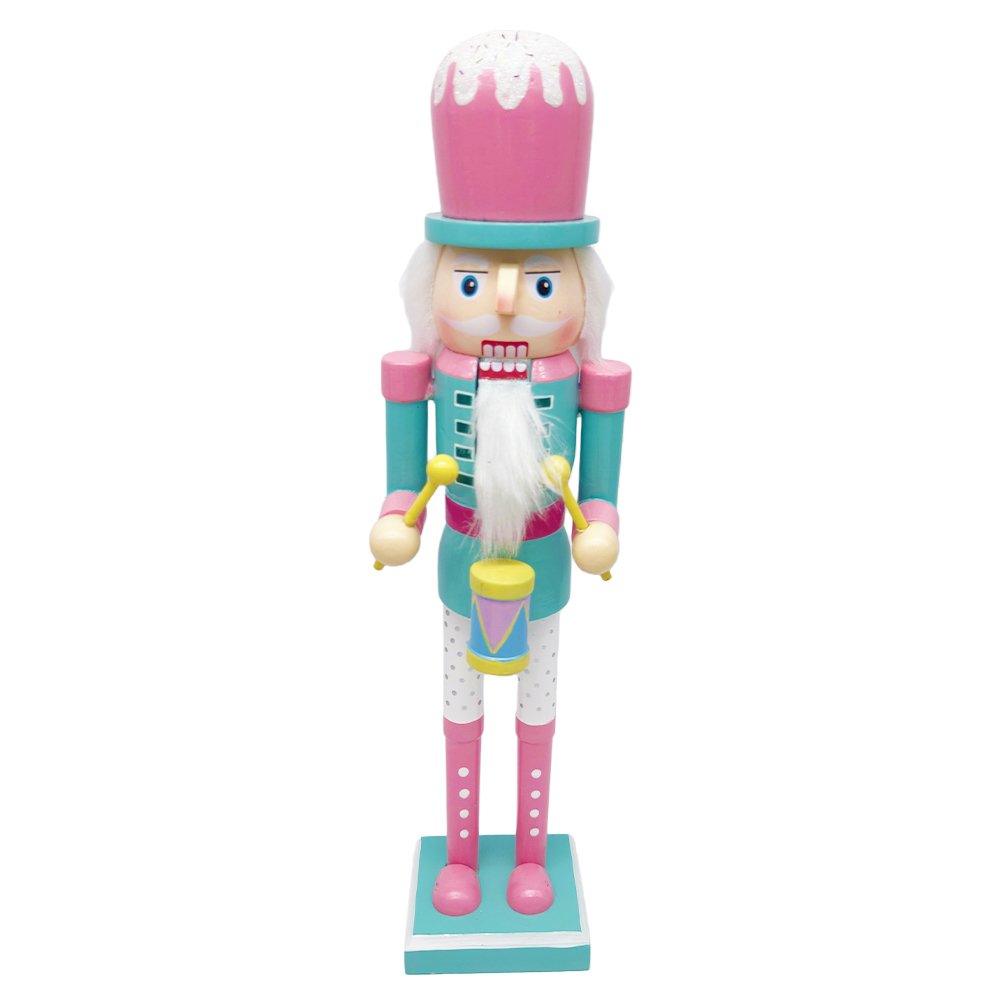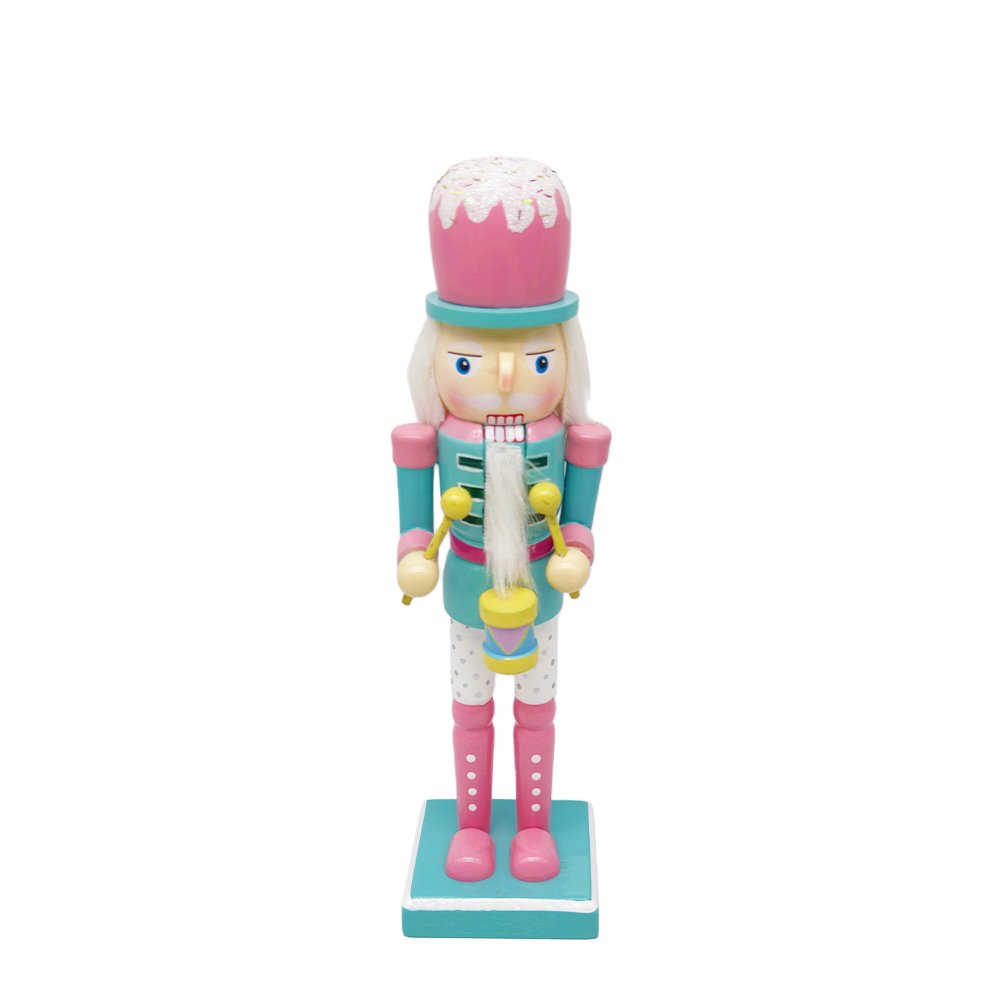 Add playful charm to your holiday décor with this Pastel Drum Wooden Nutcracker Figurine. Featuring a soft candy-inspired color palette of pink, teal, and white, this nutcracker stands out with a frosted cake-style hat and a miniature drum held in front, bringing a joyful musical holiday vibe. The gentle colors and sweet details make it ideal for modern, pastel, and family-friendly Christmas themes.