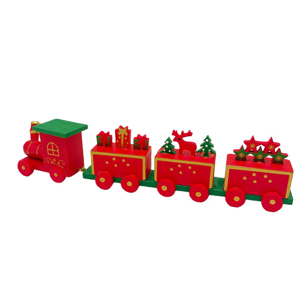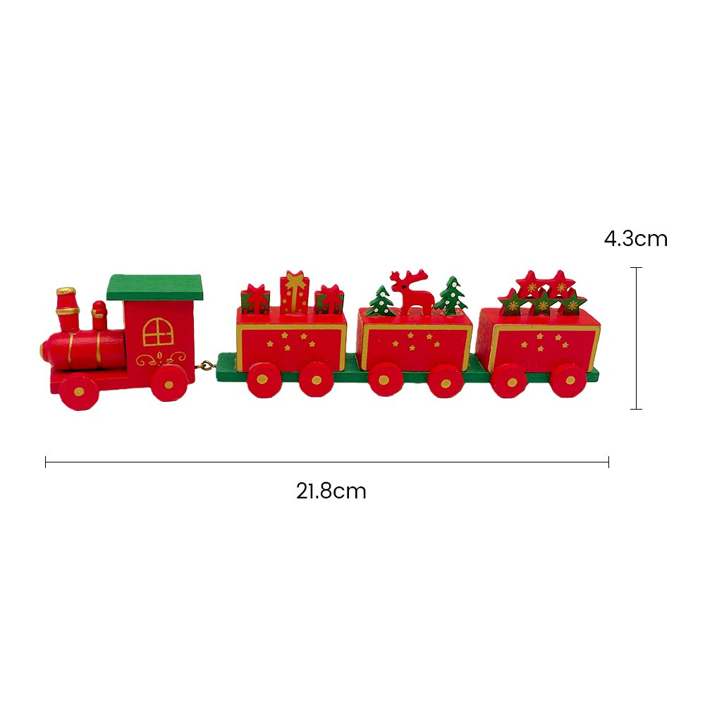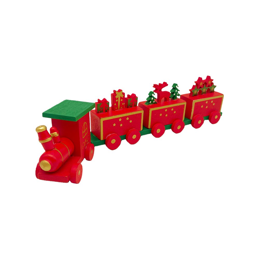 Celebrate the magic of Christmas with this cheerful Red & Green Wooden Christmas Train, designed to bring joy and festive spirit into your home. The handcrafted train includes four connected carts, beautifully decorated with wrapped gifts, Christmas trees, and a playful red reindeer—all in bright seasonal colors.