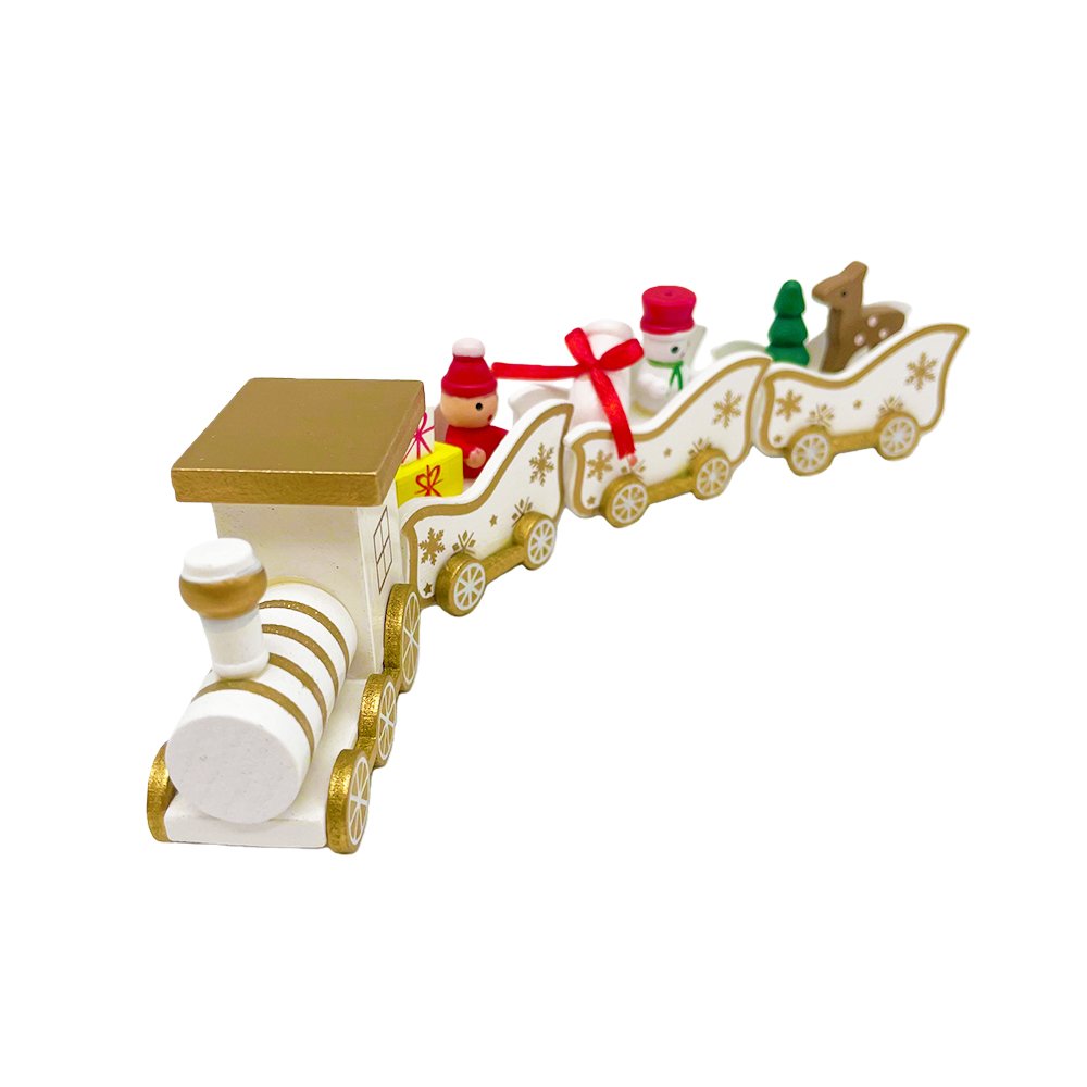 White Gold Christmas Train Wooden Holiday Decoration Santa Snowman Reindeer