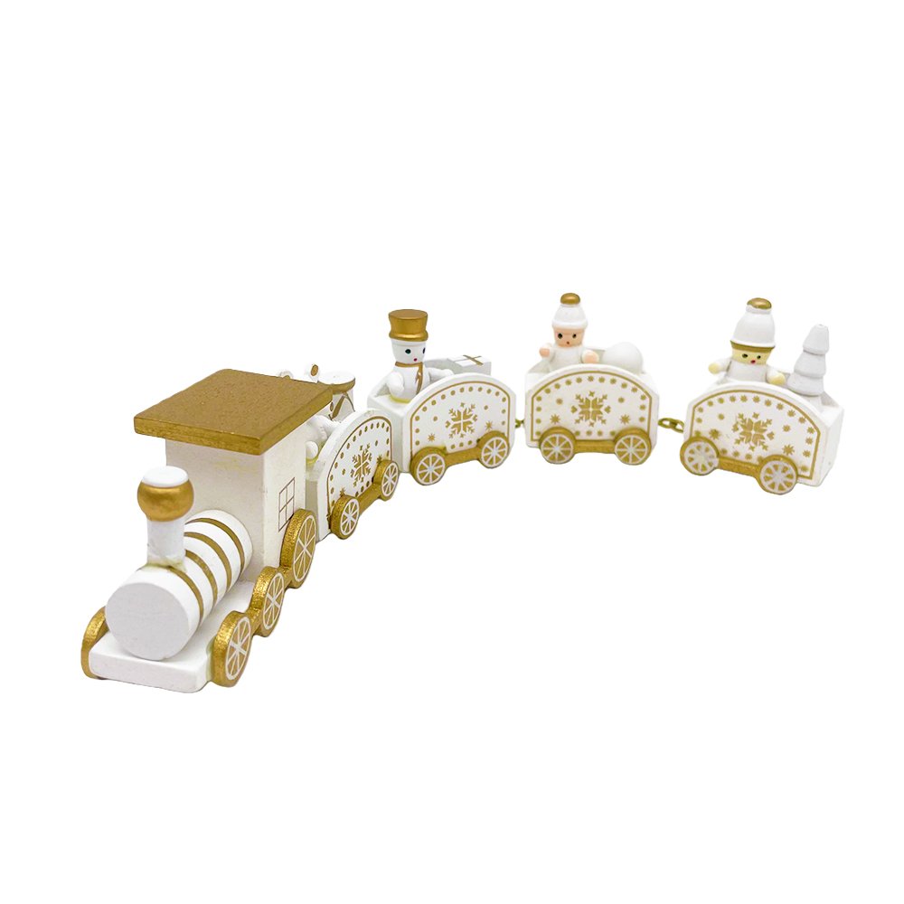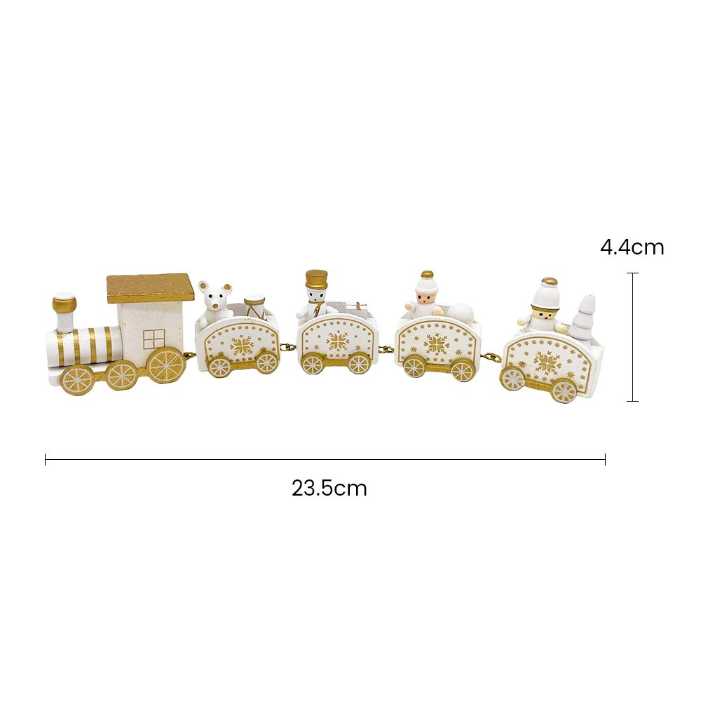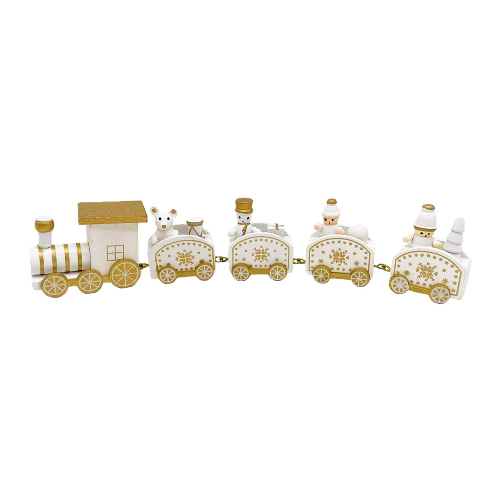 White Gold Wooden Christmas Train Decoration Snowman Reindeer Holiday