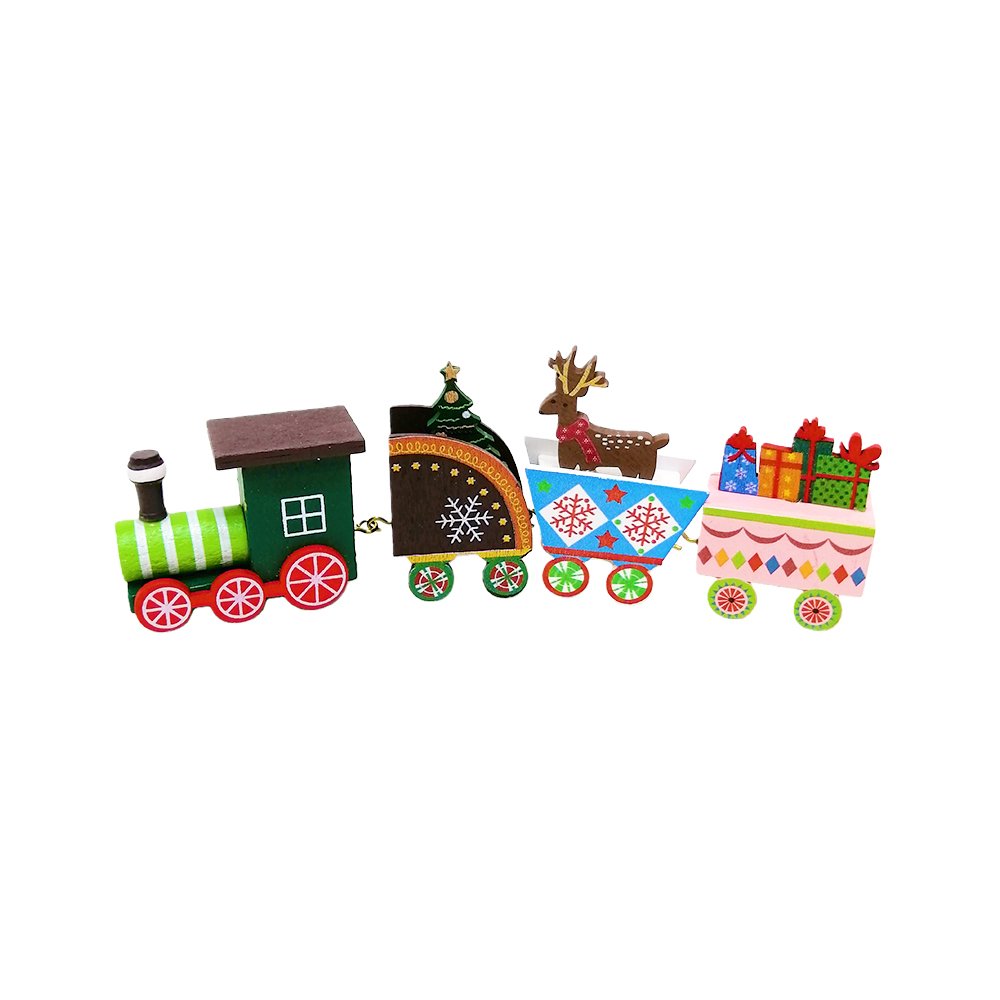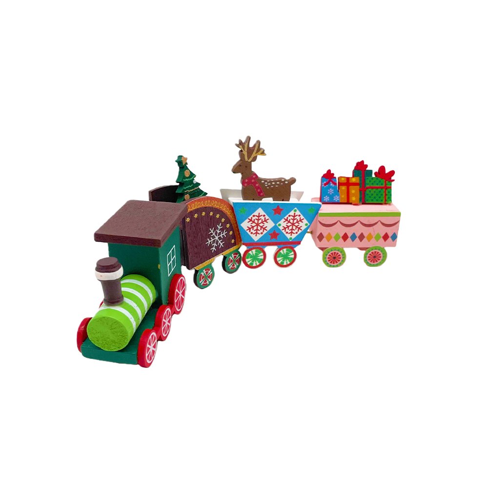 Celebrate the holiday season with this Wooden Christmas Train with Reindeer and Gifts, a delightful handcrafted decoration perfect for adding festive charm to your home. This colorful train features a green engine pulling three beautifully painted carts — one with a Christmas tree, one carrying a reindeer, and one filled with bright presents. Each piece is detailed with cheerful holiday patterns and vibrant colors, making it a charming addition to any Christmas décor.