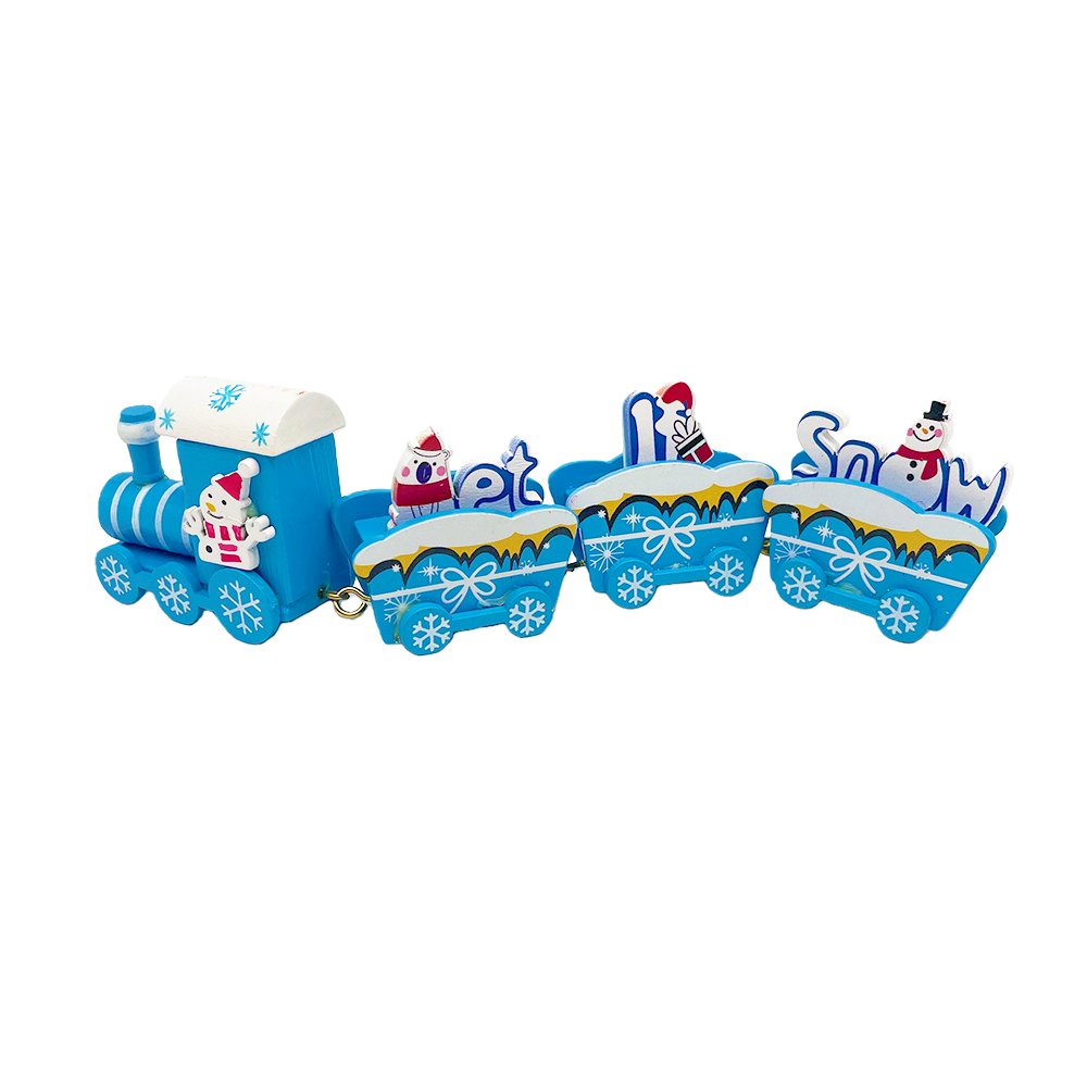 Bring the beauty of a snowy winter wonderland into your home with this Wooden “Let It Snow” Christmas Train! Designed in festive icy blue, this charming locomotive pulls three themed carts decorated with snowflakes, ribbon details, and adorable mini figurines including Santa and cheerful snowmen. The raised “Let It Snow” lettering adds an extra touch of seasonal magic, making this decoration a joyful highlight of your holiday décor.